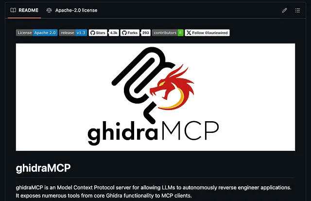Suddenly, the possibility opened up for RE developers like us to expose our favorite tools, like Ghidra, to LLMs. There are already hundreds of MCP servers out there, but seeing LaurieWired ’s release of GhidraMCP and the demonstration video showing it working with Claude truly opened my eyes to the practical potential.## GitHub - LaurieWired/GhidraMCP: MCP Server for Ghidra