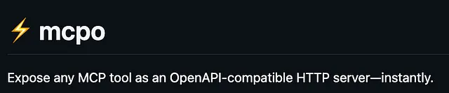To bridge this communication gap, we will add one last component: mcpo.## GitHub - open-webui/mcpo: A simple, secure MCP-to-OpenAPI proxy server