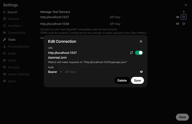 5. Adding the GhidraMCP server (tool) to OpenWebUI